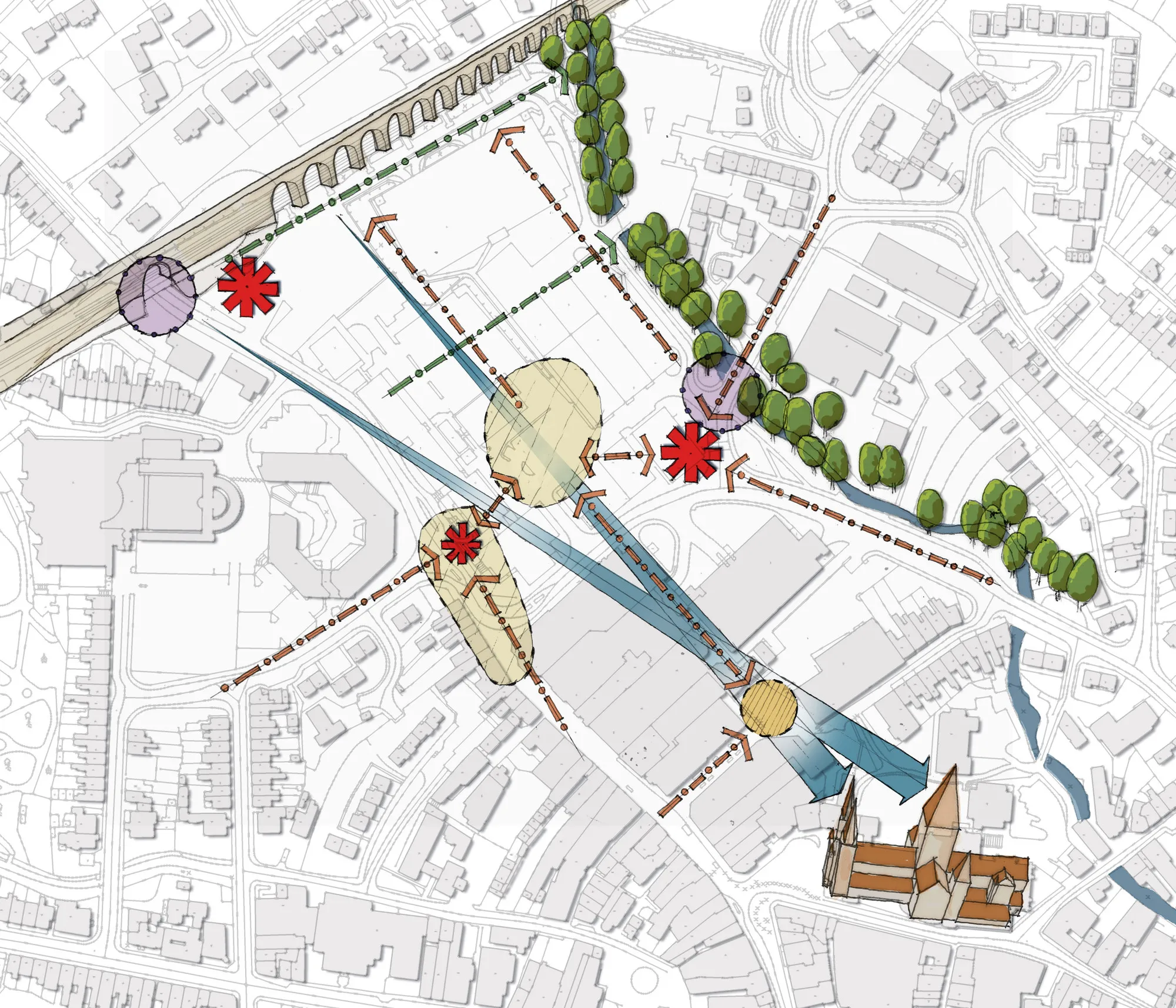 Our townscape studies identify character, movement and the quality of the sense of arrival. We then connect urban nodes, gateway sites and key developments through our ‘lily pad’ strategy, creating sociable, walkable, biodiverse routes that set the stage for towns to thrive. When the framework is built around belonging, everything else can flourish.
