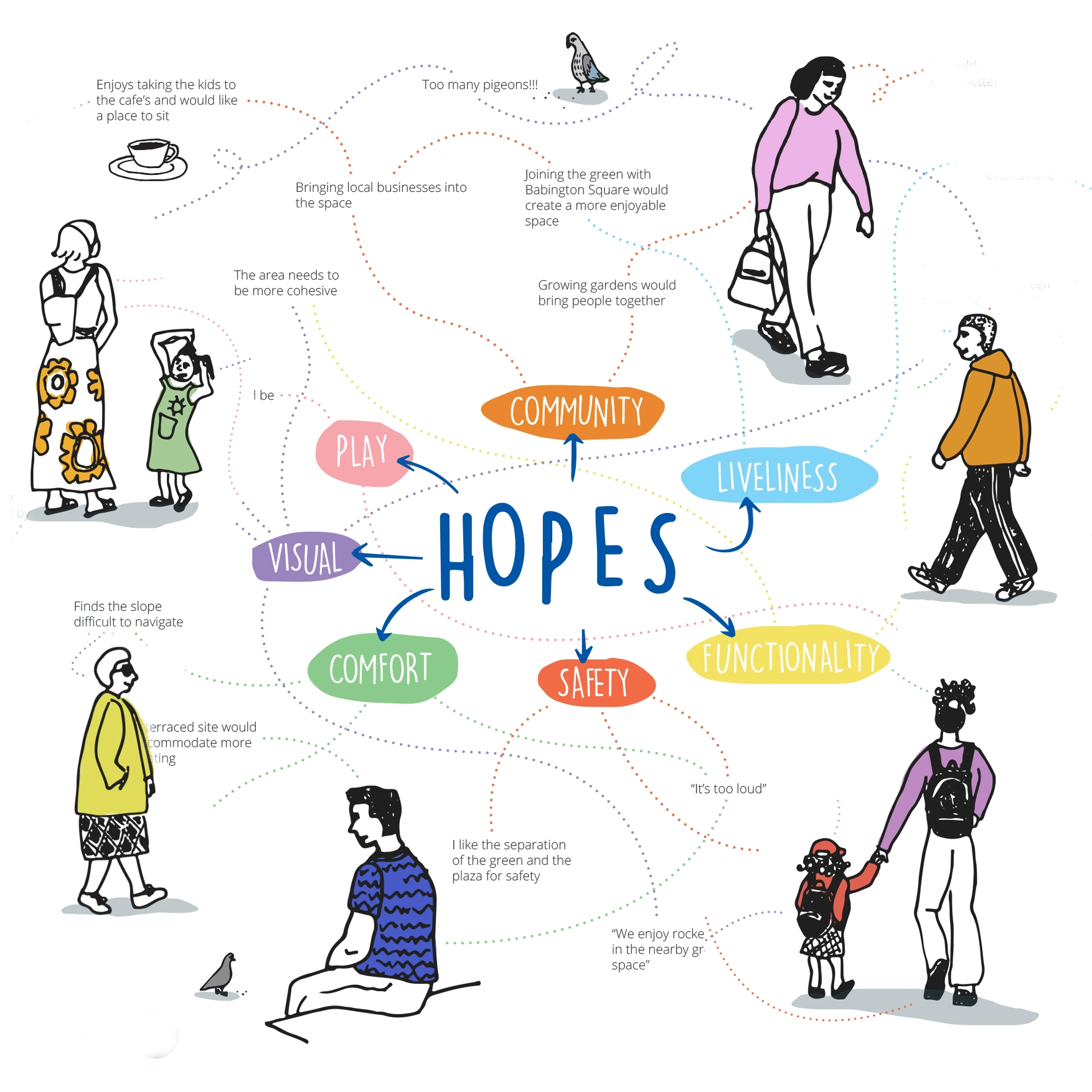 Our ‘Design through Dialogue’ tool invites genuine participation for all. Through workshops, walkabouts, pop-ups, storytelling sessions and targeted outreach at events, everyone has a voice. Everyone is heard. Because revealing what matters to local people in their everyday experience of the spaces and places they use uncovers insights that the planning might easily miss.